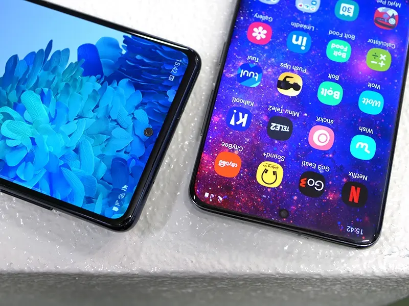 “Lite” mudelile omaselt, on reaalsuses S20 FE hoopis suurem telefon. Seda nii füüsilistelt mõõtudelt kui ka ekraani poolest, mis on 0,3 tolli võrra suurem (6,5 vs 6,2). Nõksa on tagasi kruvitud ka tema resolutsiooni (407 ppi vs 563 ppi), mis Samsungi AMOLED ekraani puhul siiski väga rolli ei mängi. Kiidusõnu väärib ka 120 Hz värskendussageduse alles jätmine S20 FE-le. Tänu sellele on läbi menüüde ja Delfi toodangu lippamine tõesti sujuvam.